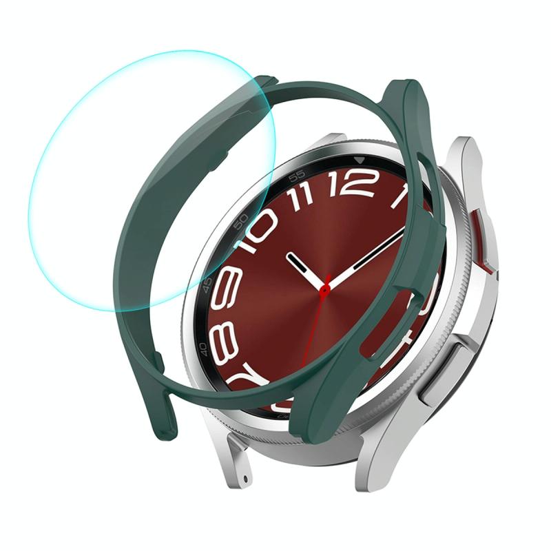 For Samsung Galaxy Watch6 Classic 47mm ENKAY Hat-Prince Electroplated Hard PC Case + 0.2mm 9H Glass Screen Protector(Dark Green) (ENKAY)