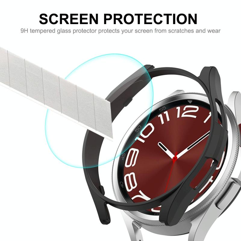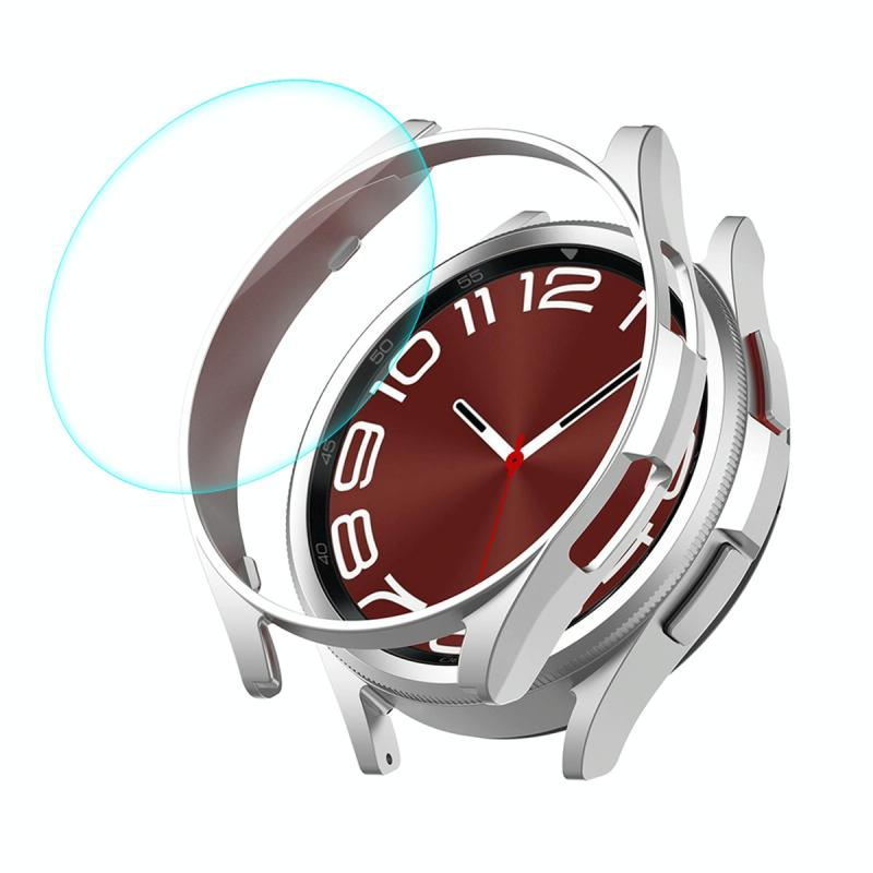 For Samsung Galaxy Watch6 Classic 47mm ENKAY Hat-Prince Electroplated Hard PC Case + 0.2mm 9H Glass Screen Protector(Silver) (ENKAY)