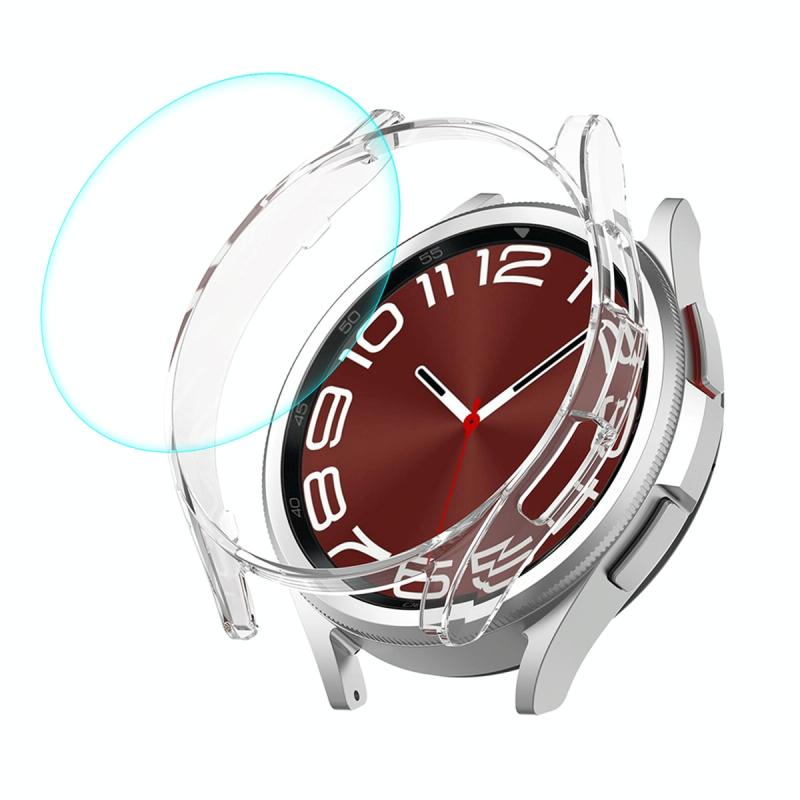 For Samsung Galaxy Watch6 Classic 47mm ENKAY Hat-Prince Electroplated Hard PC Case + 0.2mm 9H Glass Screen Protector(Transparent) (ENKAY)