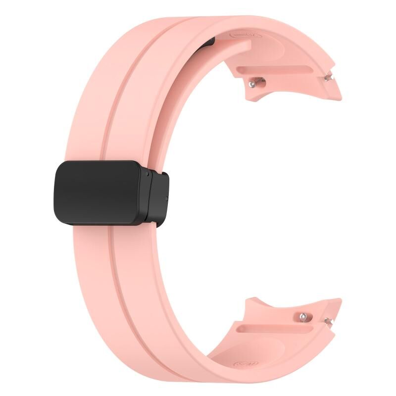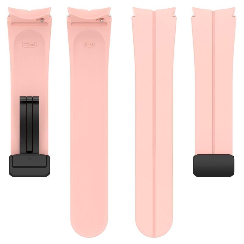 Για το Samsung Galaxy Watch7 40 / 44mm Μαγνητική πτυσσόμενη μαύρη ζώνη σιλικόνης με αγκράφα (ανοιχτό ροζ)