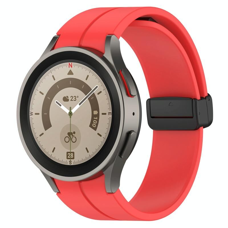 Για το Samsung Galaxy Watch7 40 / 44mm Μαγνητική πτυσσόμενη μαύρη ζώνη σιλικόνης με αγκράφα (κόκκινο)