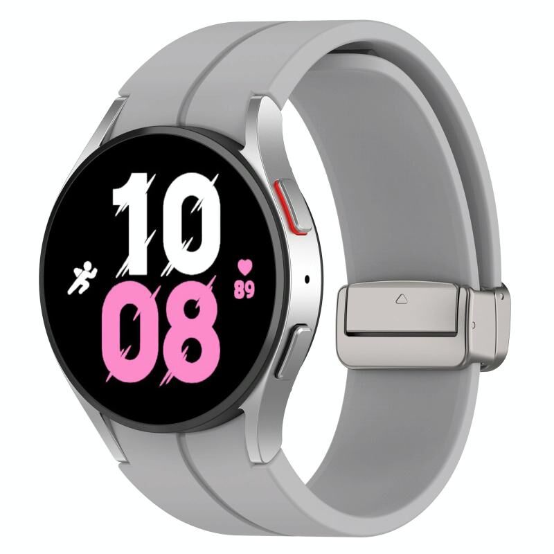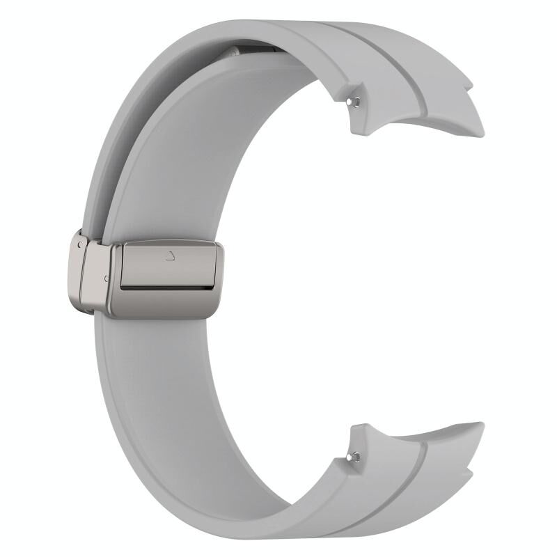 Για το Samsung Galaxy Watch7 40 / 44mm Μαγνητική πτυσσόμενη ασημένια πόρπη σιλικόνης ζώνη ρολογιού (ανοιχτό γκρι)