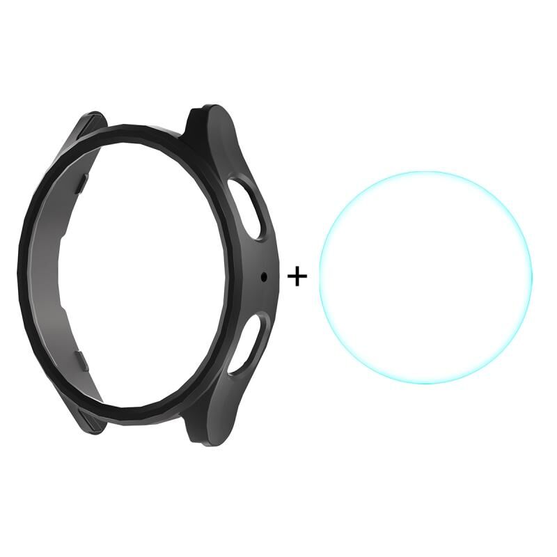Για Samsung Galaxy Watch7 44mm Θήκη από σκληρό πολυανθρακικό PC με επιμετάλλωση ENKAY Hat-Prince + Προστατευτική μεμβράνη οθόνης από γυαλί 9H 0,2mm (Μαύρο) (ENKAY)
