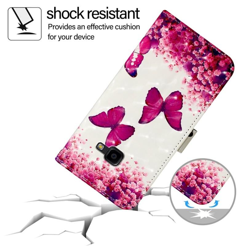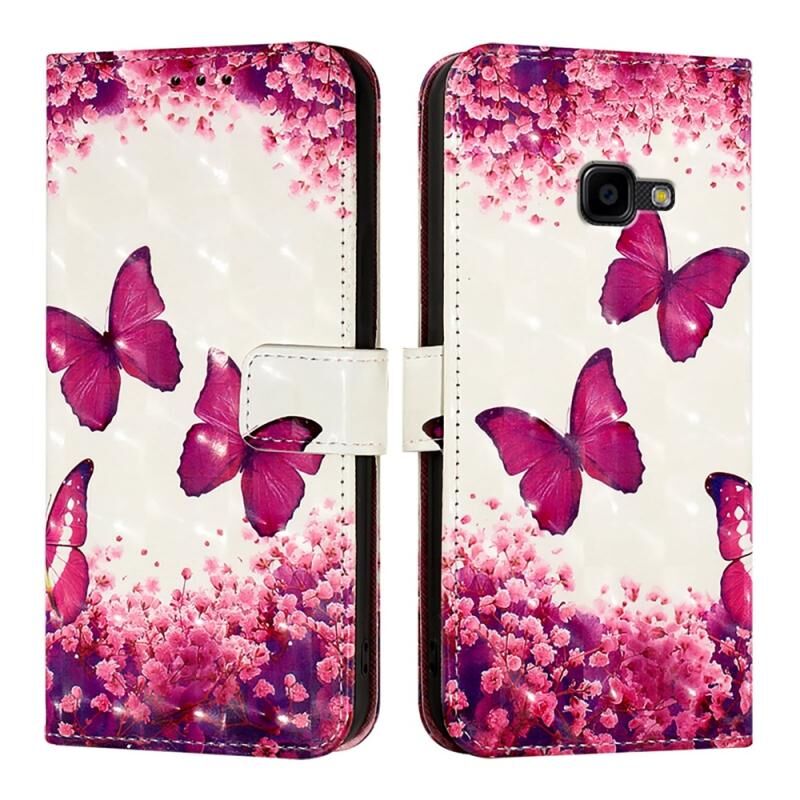 Θήκη τηλεφώνου Samsung Galaxy Xcover 4s, δερμάτινη, οριζόντια αναδιπλούμενη, με τρισδιάστατη ζωγραφική (Ροζ Πεταλούδα)