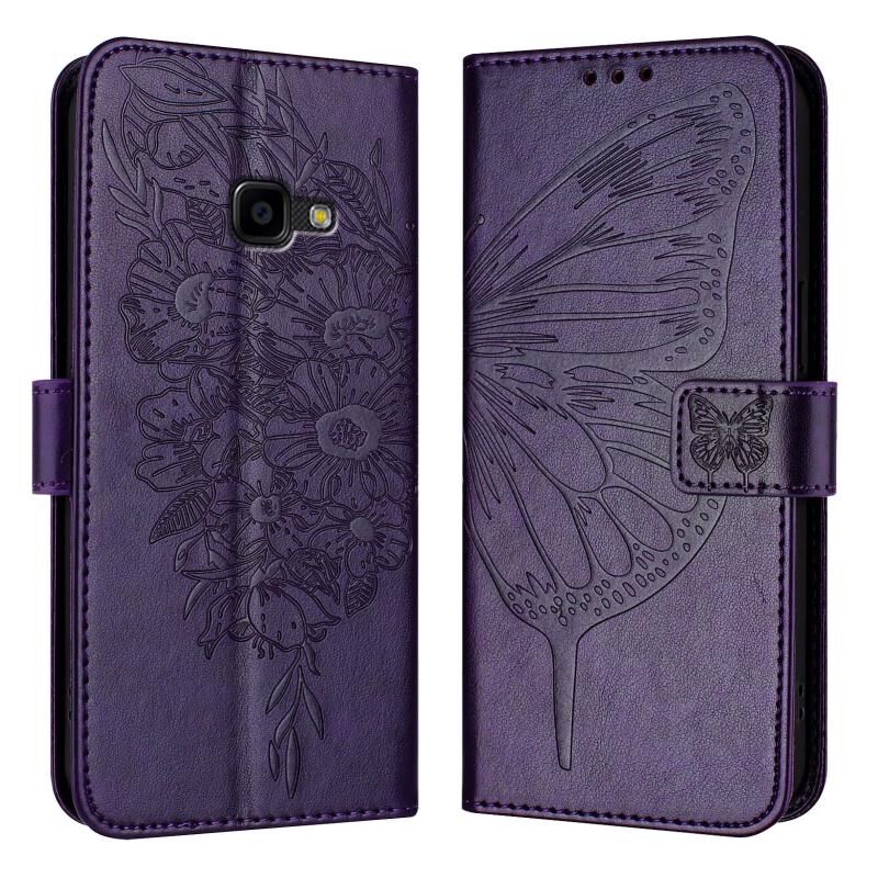 Για Samsung Galaxy Xcover 4s / Xcover 4 ανάγλυφη πεταλούδα δερμάτινη θήκη τηλεφώνου (σκούρο μοβ)