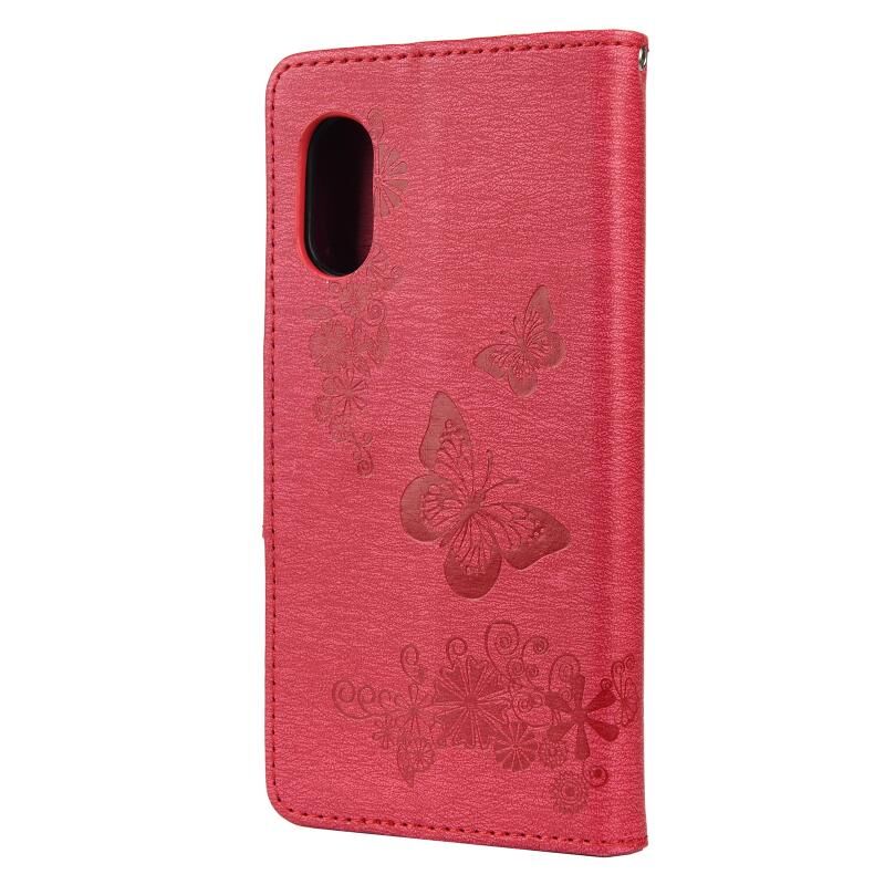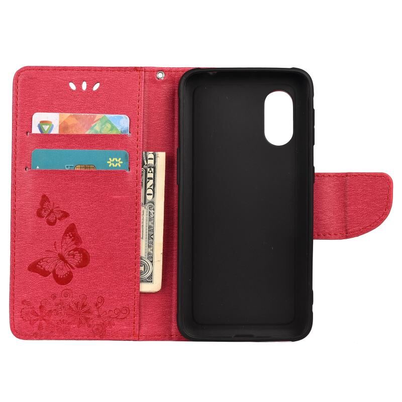 Για Samsung Galaxy Xcover 5 πεταλούδες ανάγλυφη οριζόντια Flip δερμάτινη θήκη με θήκη & υποδοχές για κάρτες & πορτοφόλι (κόκκινο)