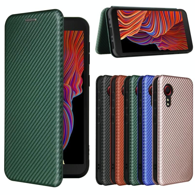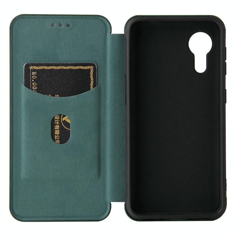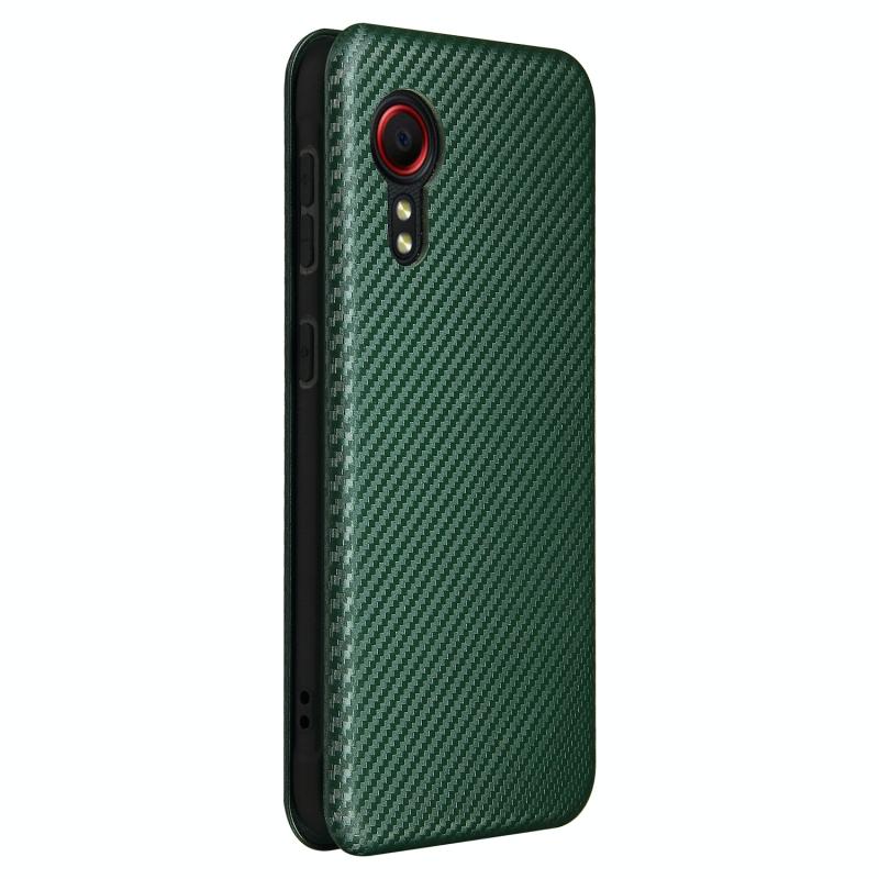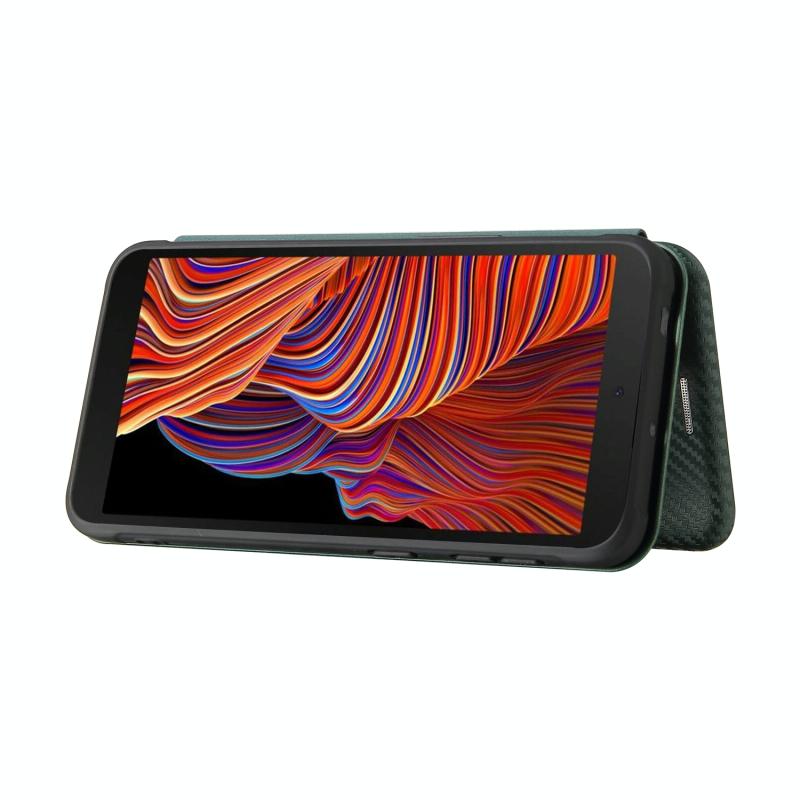 For Samsung Galaxy Xcover 5 Carbon Fiber Texture Horizontal Flip TPU + PC + PU Leather Case with Card Slot(Green)