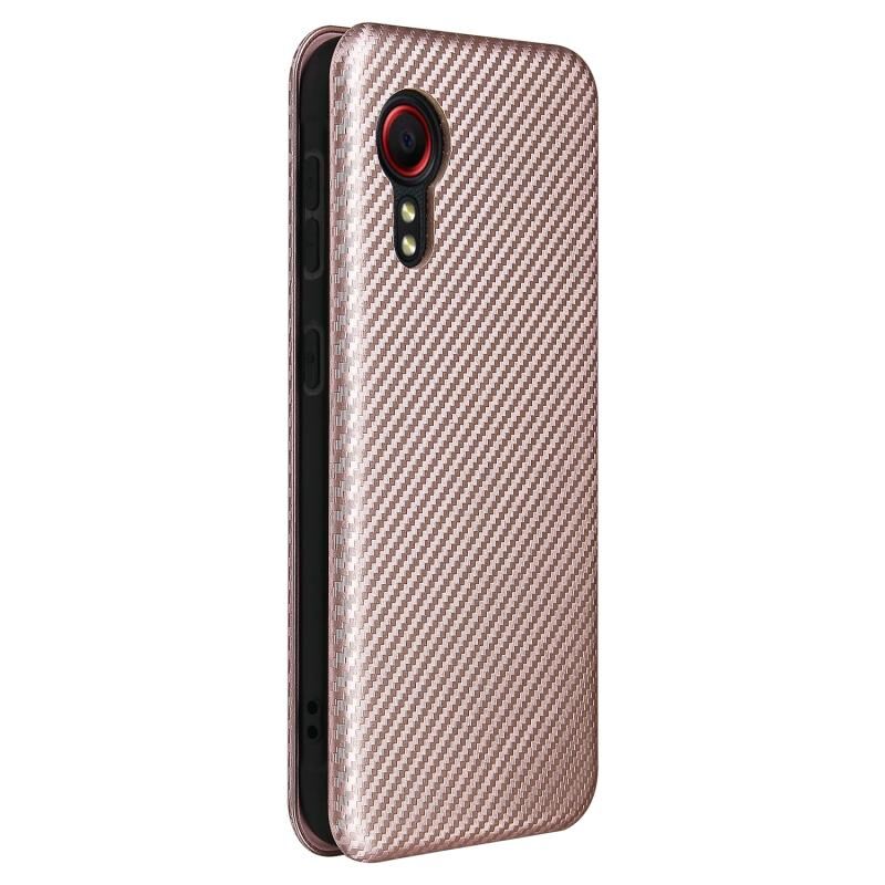 Για Samsung Galaxy Xcover 5 Carbon Fiber υφή οριζόντια Flip TPU + PC + PU δέρμα υπόθεση με υποδοχή κάρτας (ροζ)