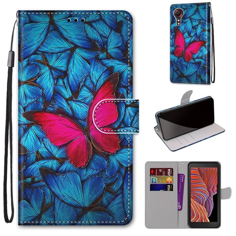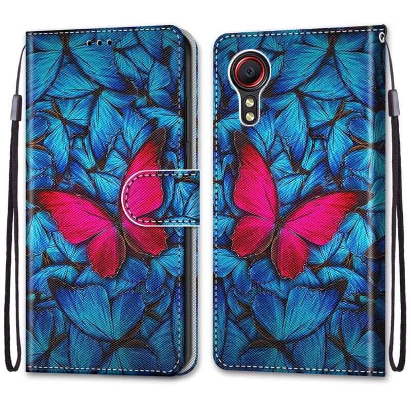 Θήκη Samsung Galaxy Xcover 5 με σχέδιο, ανάγλυφη υφή, οριζόντια, από δερματίνη PU με βάση, θήκες καρτών, πορτοφόλι & λουρί (Χρυσό Διαμάντι Πεταλούδα)