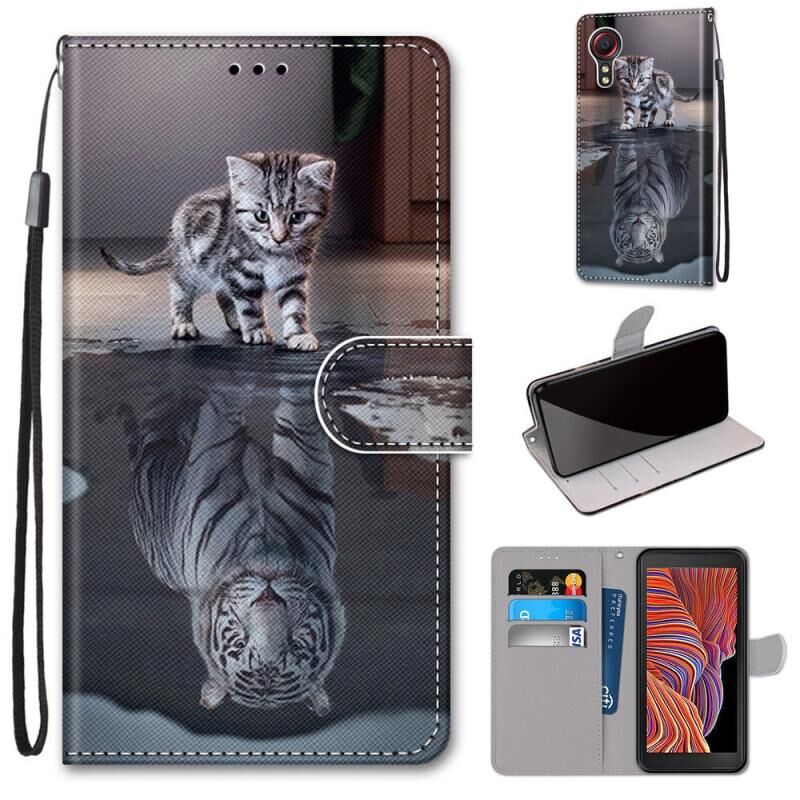 Θήκη Samsung Galaxy Xcover 5 με σχέδιο, υφή σταυρού, οριζόντια, από δερματίνη PU με βάση, θήκες καρτών, πορτοφόλι & λουρί (Η γάτα γίνεται τίγρης)
