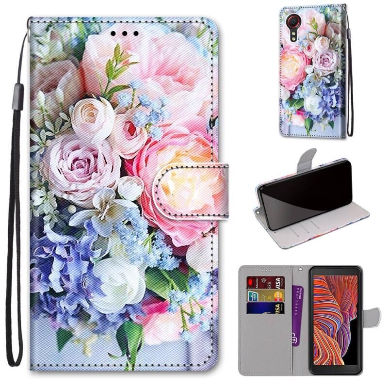 Θήκη Samsung Galaxy Xcover 5 με σχέδιο, ανάγλυφη υφή, οριζόντια, από δερματίνη PU με βάση, θήκες καρτών, πορτοφόλι & λουρί (Χρυσό Διαμάντι Πεταλούδα)