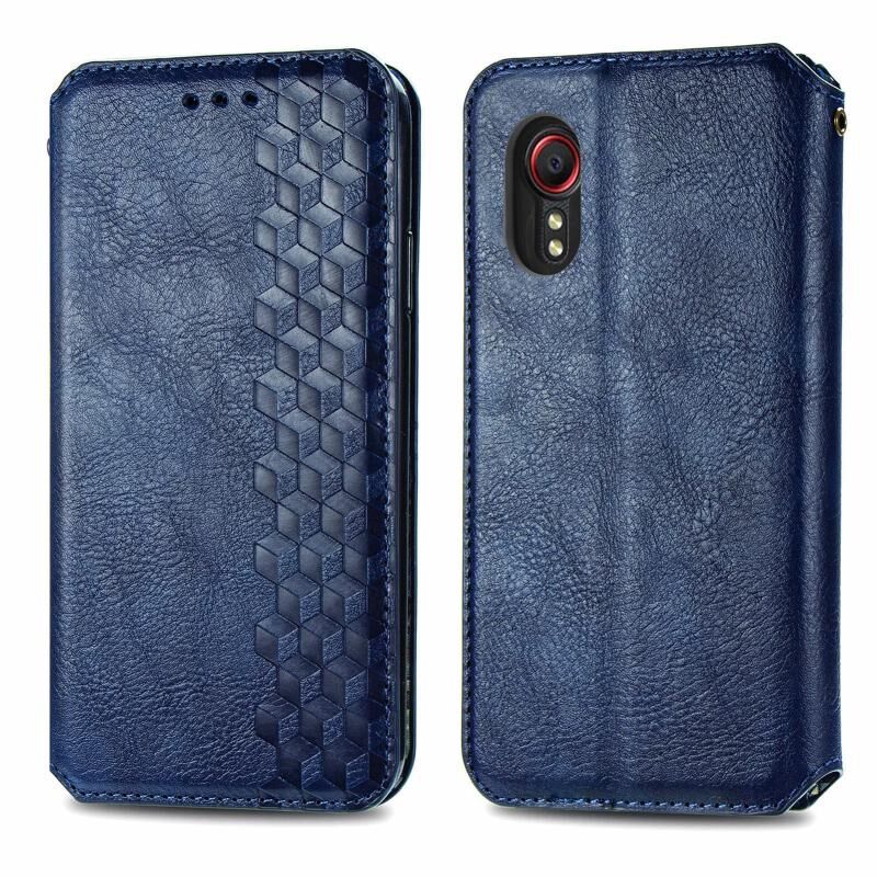Για Samsung Galaxy XCover 5 κυβικά πλέγμα πιέζεται μαγνητική δερμάτινη θήκη τηλεφώνου (μπλε)