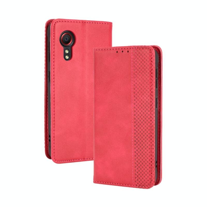 Για Samsung Galaxy Xcover 5 Μαγνητική πόρπη Ρετρό τρελό άλογο υφή οριζόντια Flip δερμάτινη θήκη με θήκη & υποδοχές για κάρτες & πλαίσιο φωτογραφιών (κόκκινο)