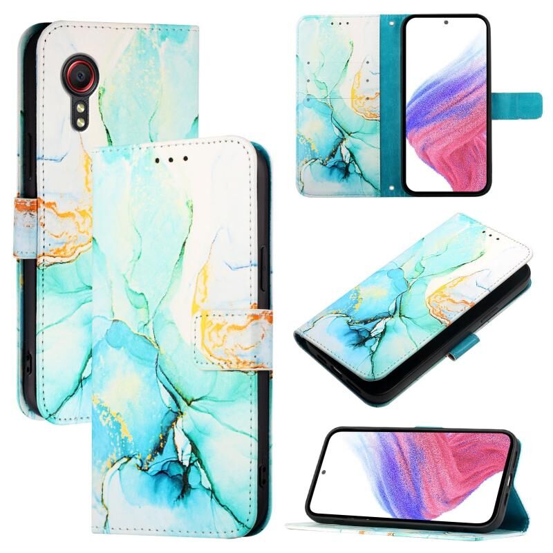 Θήκη τηλεφώνου Samsung Galaxy Xcover 5 PT003 με σχέδιο μάρμαρου, δερμάτινη, τύπου flip (Λευκό-Μωβ)