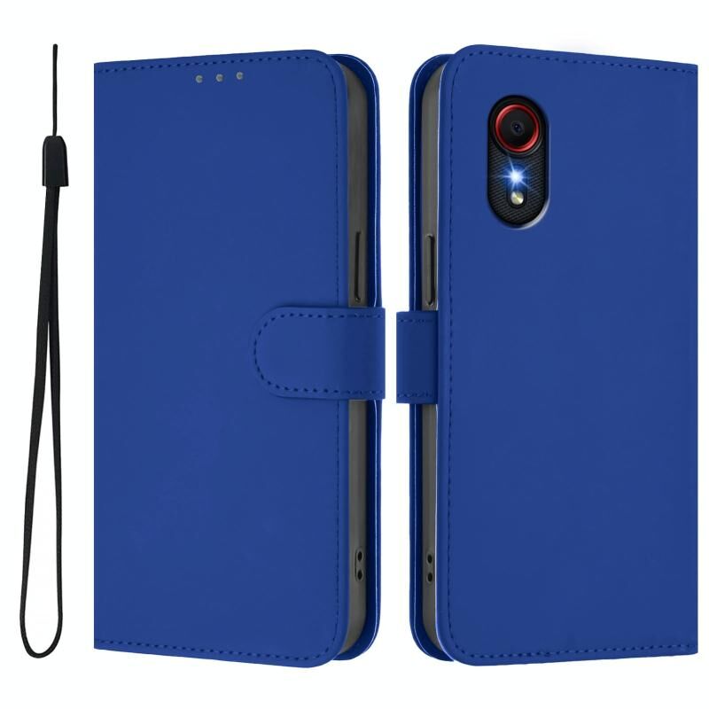 Για Samsung Galaxy XCover 5 δέρμα αίσθηση στερεό χρώμα δερμάτινη θήκη τηλεφώνου με κορδόνι (σκούρο μπλε)