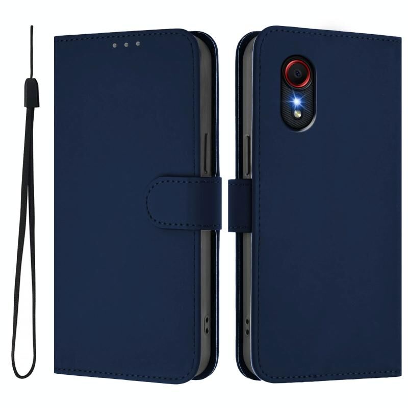 Για Samsung Galaxy XCover 5 δέρμα αίσθηση στερεό χρώμα δερμάτινη θήκη τηλεφώνου με κορδόνι (Ναυτικό μπλε)