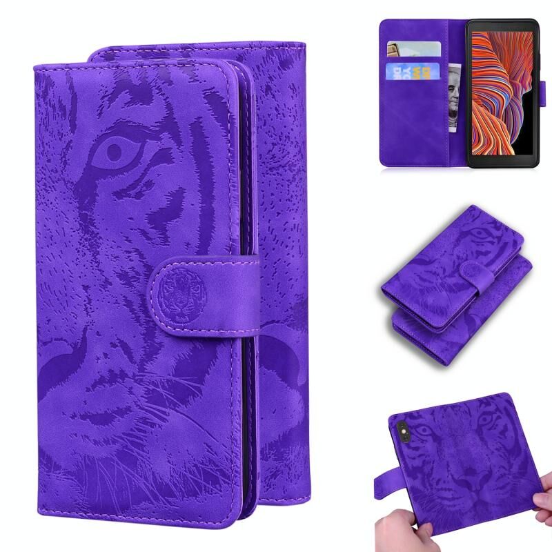 Για Samsung Galaxy Xcover 5 Tiger ανάγλυφο μοτίβο οριζόντια Flip δερμάτινη θήκη με κάτοχο & υποδοχές για κάρτες & πορτοφόλι (μωβ)