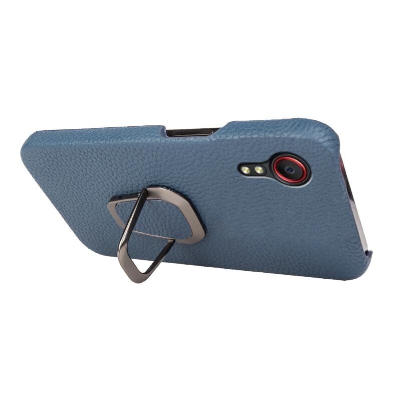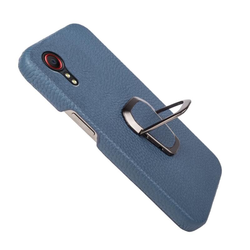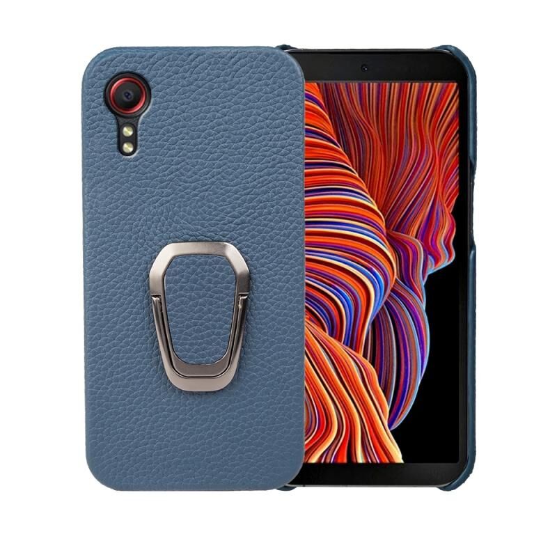 Θήκη τηλεφώνου από γνήσιο δέρμα με υφή λitchi και δακτύλιο στήριξης για Samsung Galaxy Xcover 5 / Xcover 5s (Μαύρο)