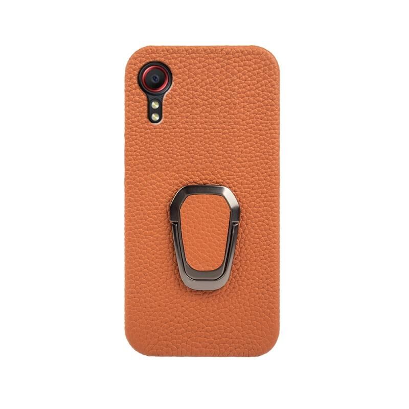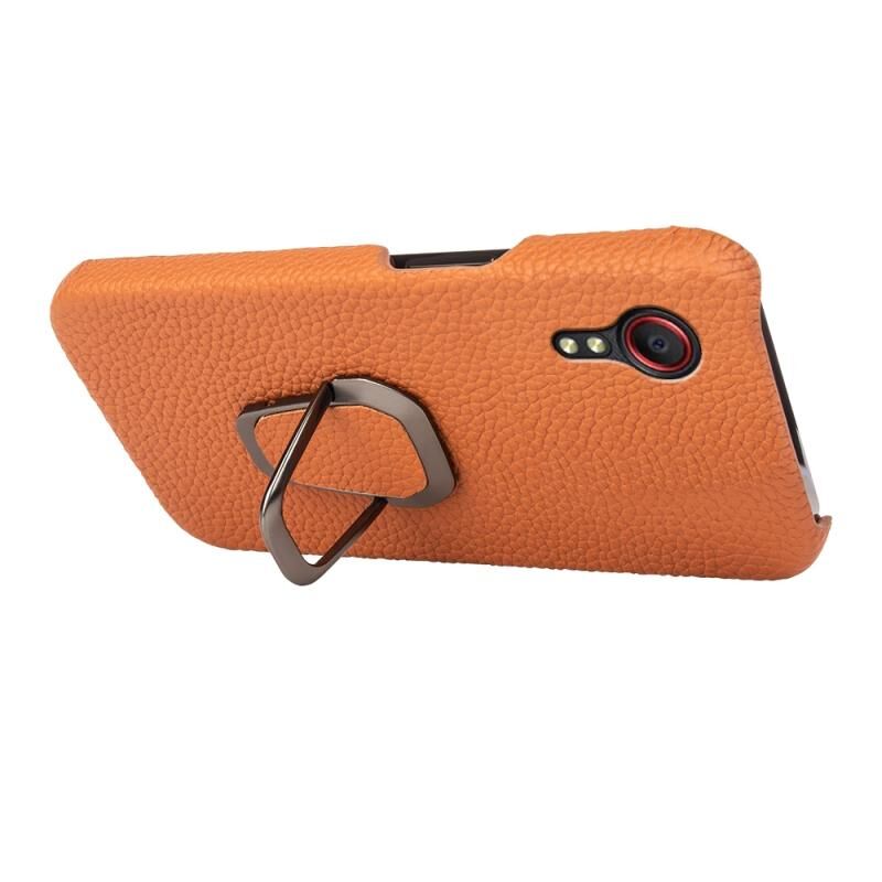 Θήκη τηλεφώνου από γνήσιο δέρμα με υφή λitchi και δακτύλιο στήριξης για Samsung Galaxy Xcover 5 / Xcover 5s (Μαύρο)