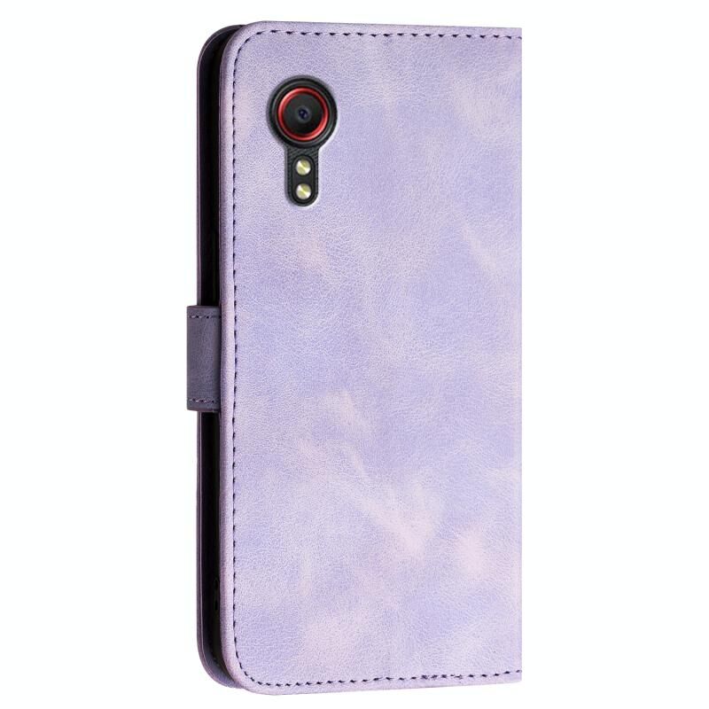 Θήκη τηλεφώνου Samsung Galaxy XCover 5 YX0080, δερμάτινη, τύπου flip, με ανάγλυφο σχέδιο πλέγματος και πεταλούδας και λουρί (Σκούρο Μπλε)