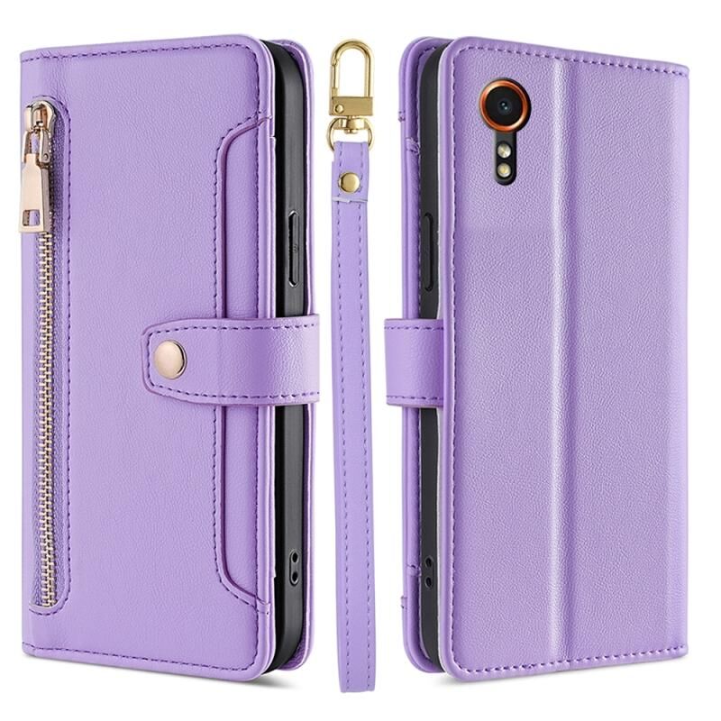 Για Samsung Galaxy Xcover 7 5G Πρόβατα Υφή Cross-body φερμουάρ πορτοφόλι δερμάτινη θήκη τηλεφώνου (μωβ)