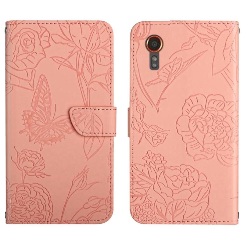 Για το Samsung Galaxy Xcover 7 5G δέρμα αίσθηση πεταλούδα ανάγλυφο Flip δέρμα τηλέφωνο υπόθεση (ρόζ)