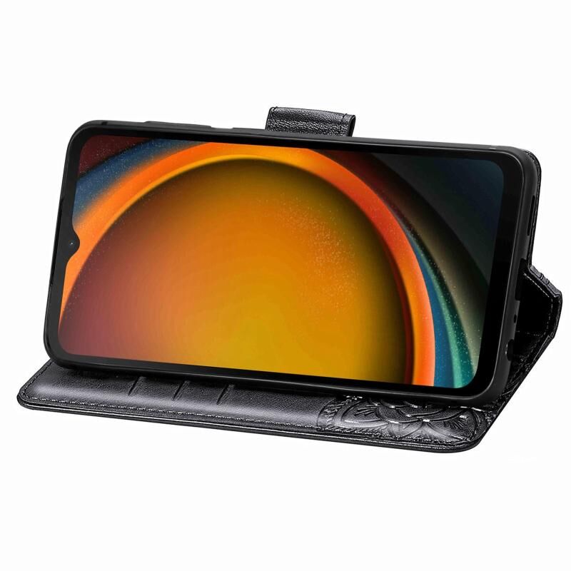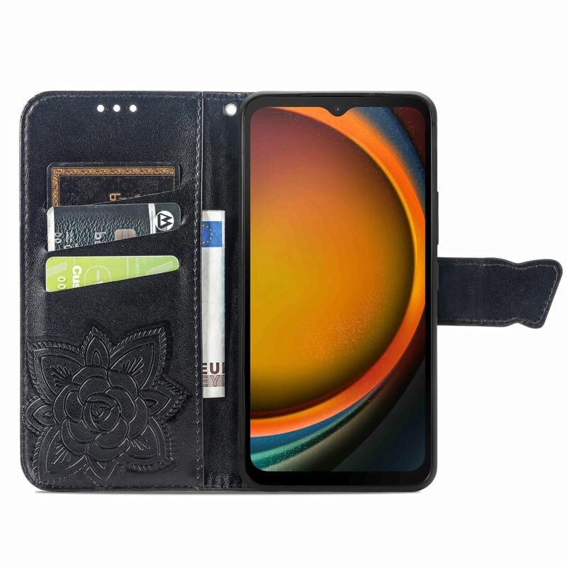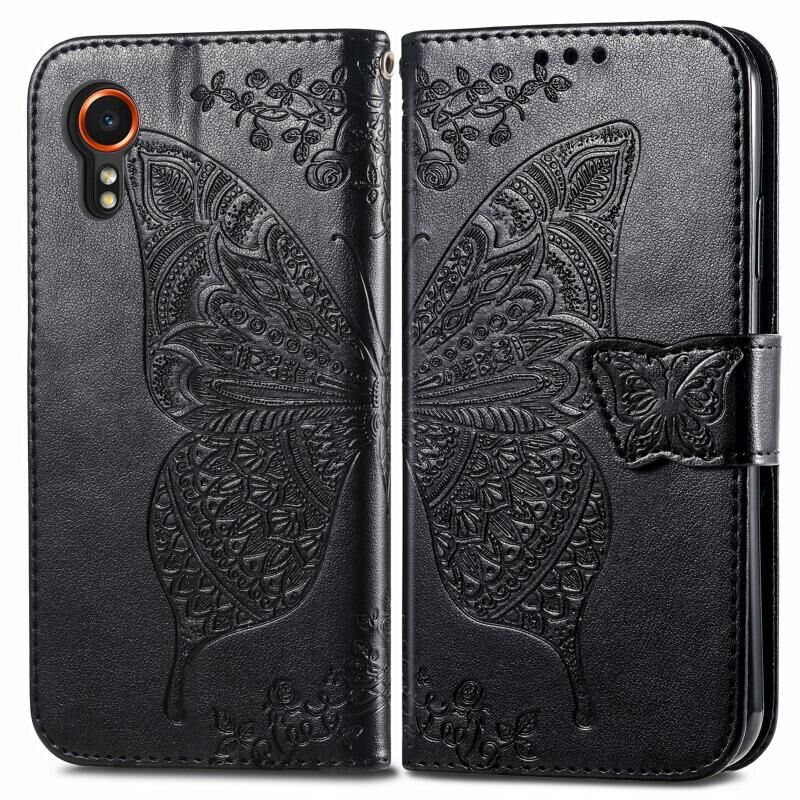 Για Samsung Galaxy Xcover 7 πεταλούδα αγάπη λουλούδι ανάγλυφο δερμάτινη θήκη τηλεφώνου (Μαύρο)