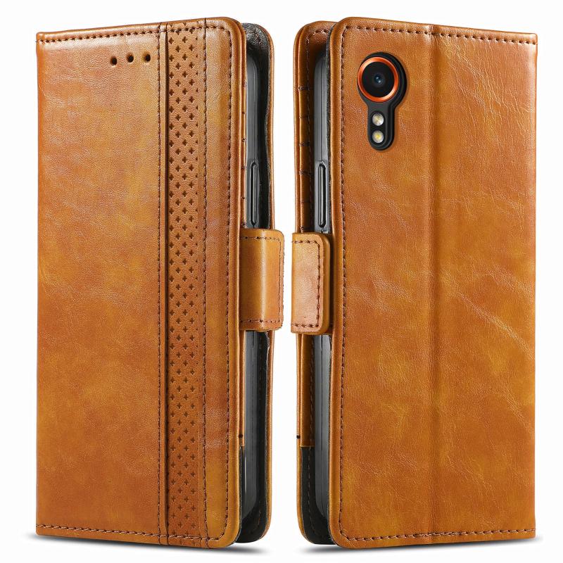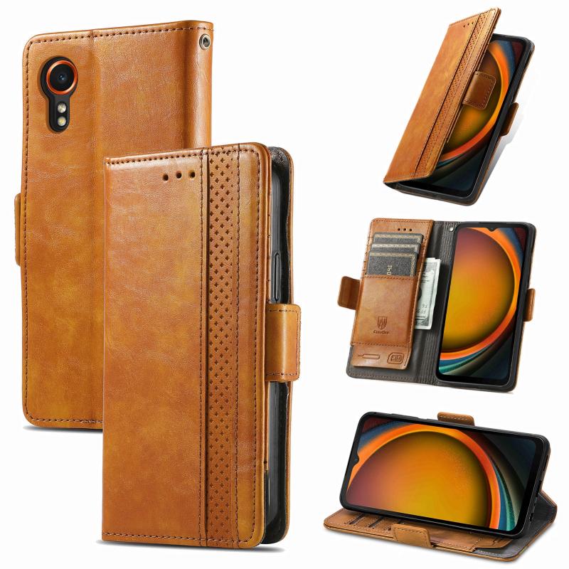 For Samsung Galaxy Xcover 7 CaseNeo Splicing Dual Magnetic Buckle Leather Phone Case(Khaki)