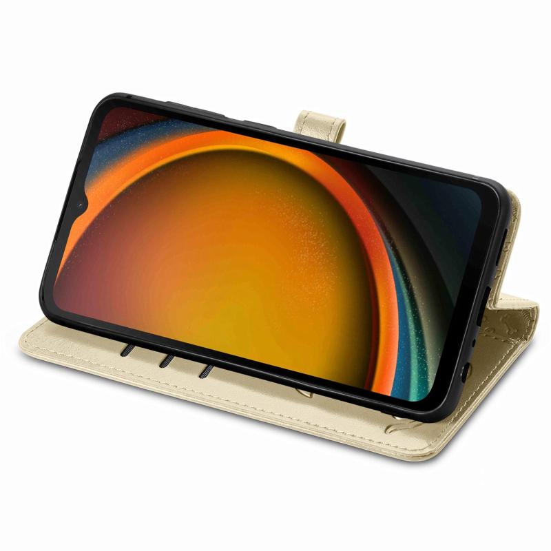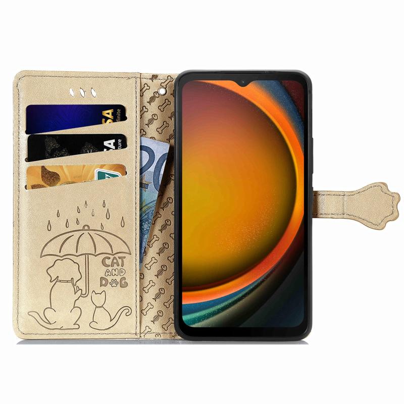 Θήκη τηλεφώνου δερμάτινη ανάγλυφη με σχέδια γάτας και σκύλου για Samsung Galaxy Xcover 7 (Κίτρινο)