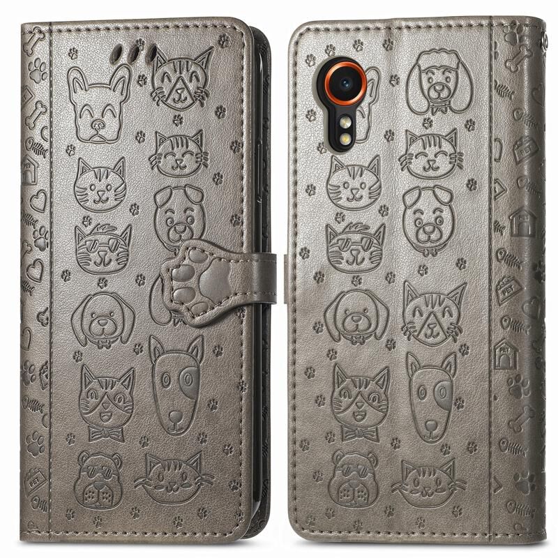 Θήκη τηλεφώνου δερμάτινη ανάγλυφη με σχέδια γάτας και σκύλου για Samsung Galaxy Xcover 7 (Κίτρινο)
