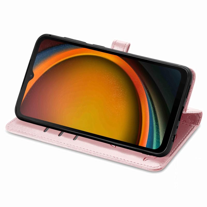 For Samsung Galaxy Xcover 7 Cat and Dog Embossed Leather Phone Case(Rose Gold)