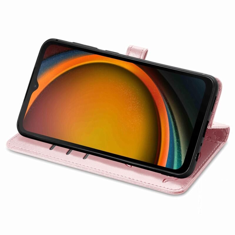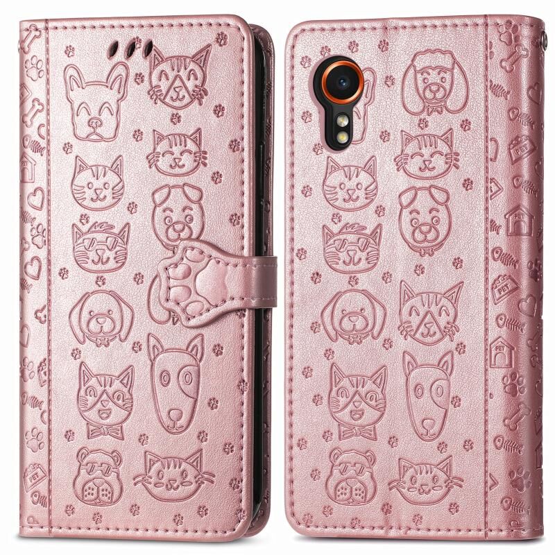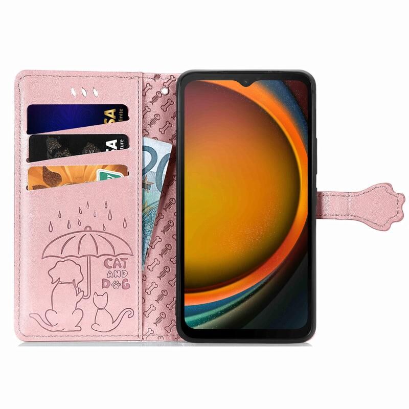 Θήκη τηλεφώνου δερμάτινη ανάγλυφη με σχέδια γάτας και σκύλου για Samsung Galaxy Xcover 7 (Κίτρινο)