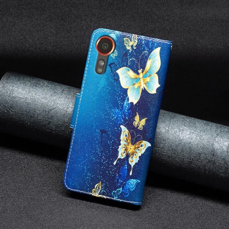 Θήκη τηλεφώνου δερμάτινη με έγχρωμο σχέδιο για Samsung Galaxy Xcover 7 (Χρυσή Πεταλούδα)