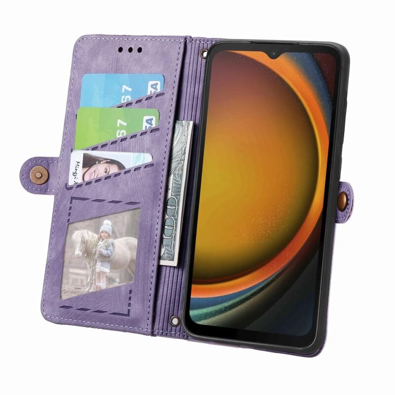 Για Samsung Galaxy Xcover 7 Γεωμετρική φερμουάρ πορτοφόλι πλευρά πόρπη δερμάτινη θήκη τηλεφώνου (Μωβ)
