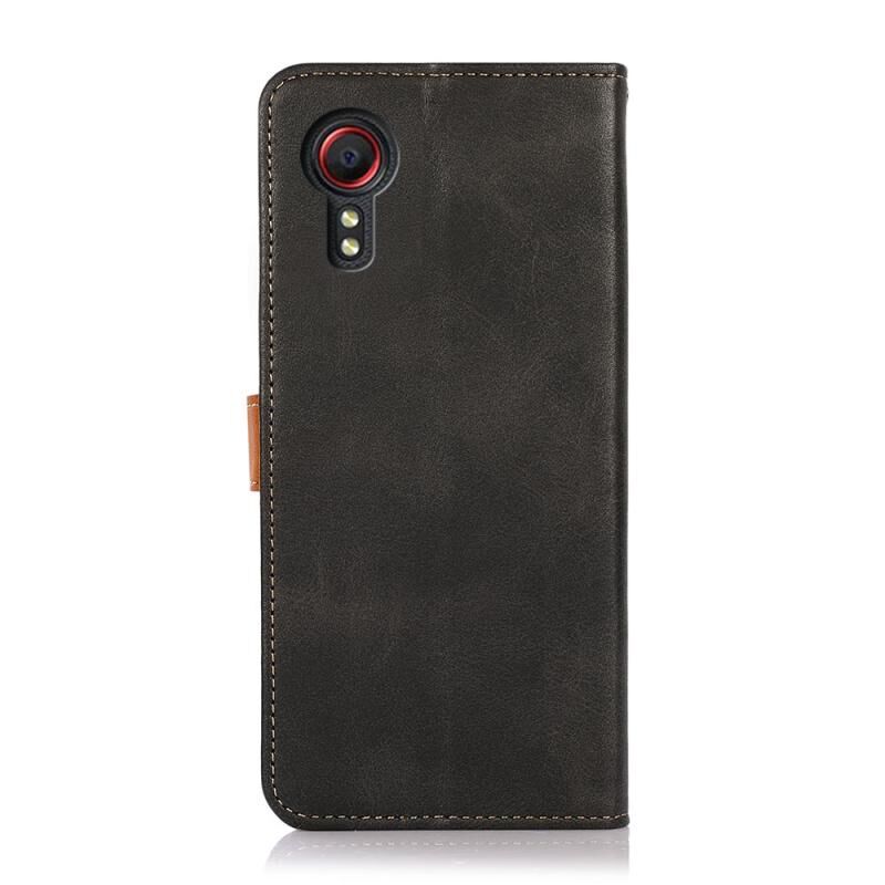 Θήκη τηλεφώνου Samsung Galaxy Xcover 7 KHAZNEH Δερμάτινη με υφή δερμάτινου βοδιού, διχρωμία, τύπου flip (Μαύρο)
