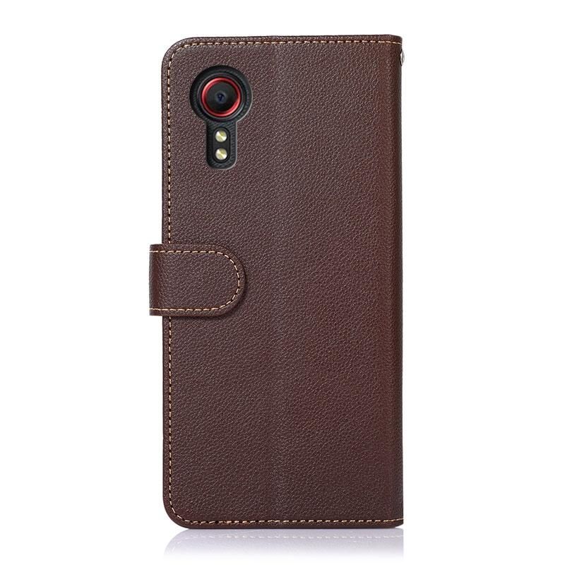 Θήκη κινητού Samsung Galaxy Xcover 7 KHAZNEH με δέρμα υφής Litchi και προστασία RFID (Καφέ)