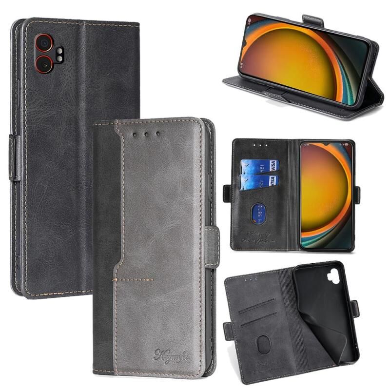 Θήκη τηλεφώνου δερμάτινη με πλευρική αγκράφα και αντίθεση χρωμάτων για Samsung Galaxy Xcover 7 Pro 5G (Μαύρο + Γκρι)
