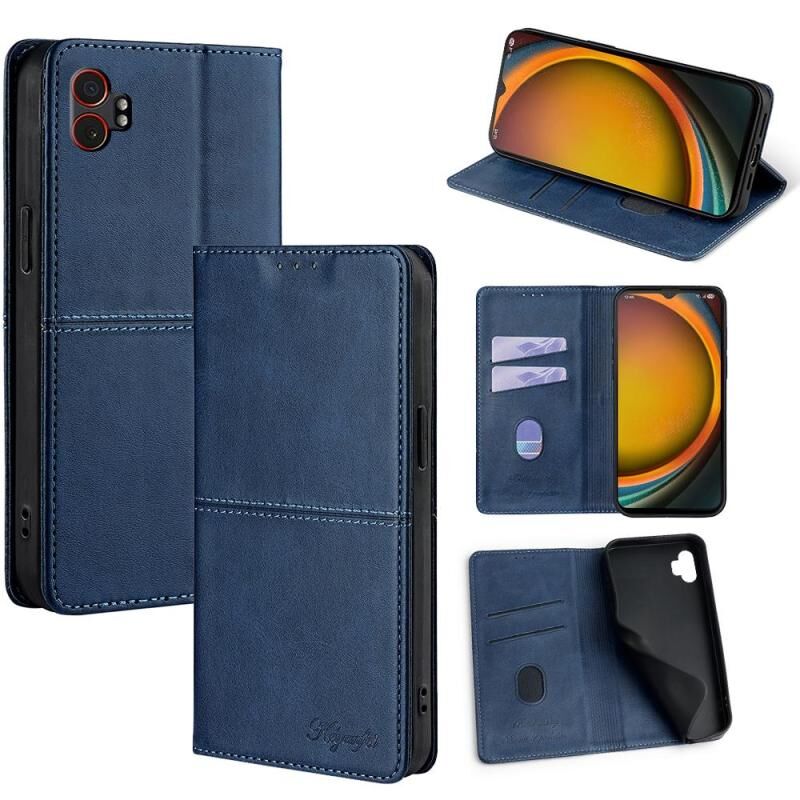 Θήκη τηλεφώνου Samsung Galaxy Xcover 7 Pro 5G με μαγνητικό δέρμα και υφή αγελάδας (Μαύρο)
