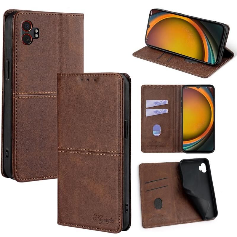 Θήκη τηλεφώνου Samsung Galaxy Xcover 7 Pro 5G με μαγνητικό δέρμα και υφή αγελάδας (Μαύρο)