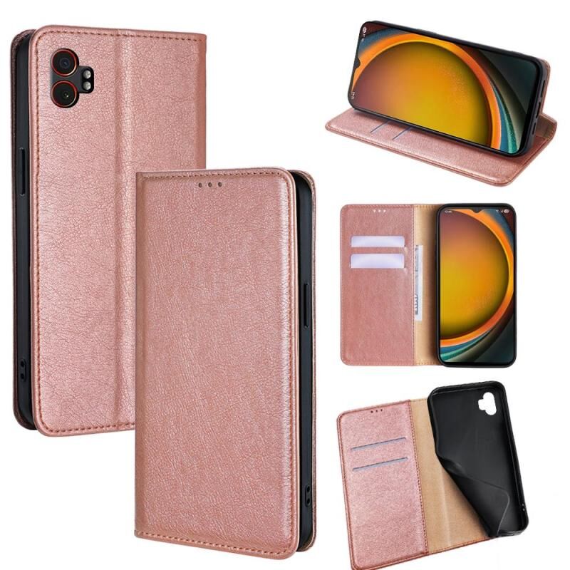 Θήκη τηλεφώνου Samsung Galaxy Xcover 7 Pro 5G, Μαγνητική Δερμάτινη με Λάδι και Γυαλιστερό Φινίρισμα, Μονόχρωμη (Ροζ χρυσός)