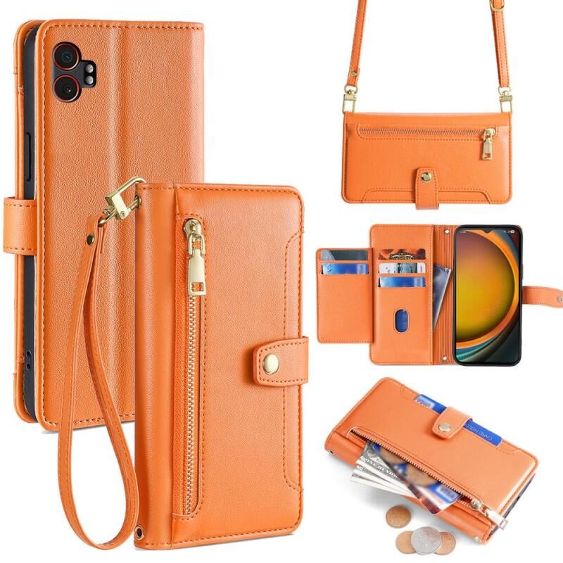 For Samsung Galaxy Xcover 7 Pro 5G Sheep Texture Cross-body Zipper Wallet Leather Phone Case(Orange)