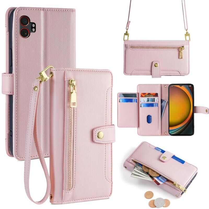 For Samsung Galaxy Xcover 7 Pro 5G Sheep Texture Cross-body Zipper Wallet Leather Phone Case(Pink)