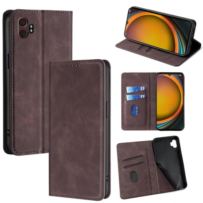 For Samsung Galaxy Xcover 7 Pro 5G Skin Feel Magnetic Leather Phone Case(Dark Brown)