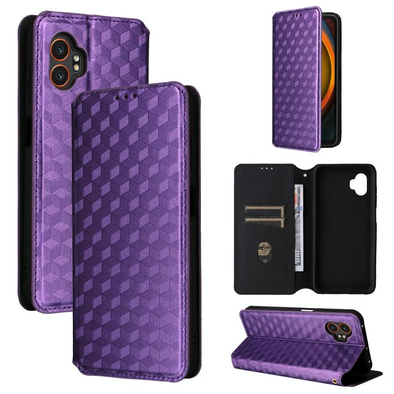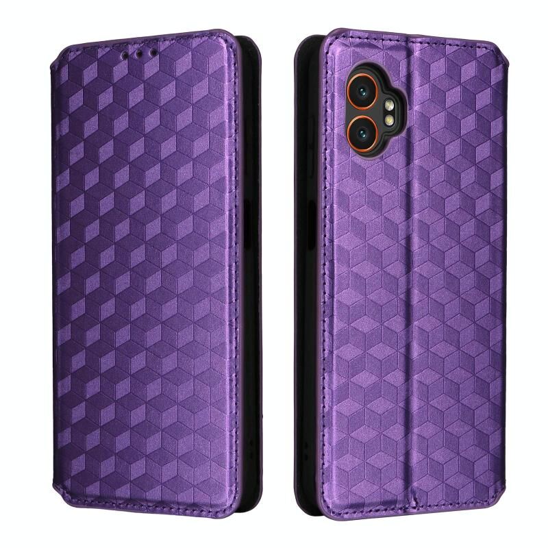 For Samsung Galaxy XCover 7 Pro Cubic Grid Texture Flip Leather Phone Case(Purple)