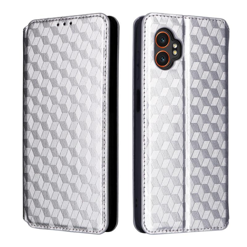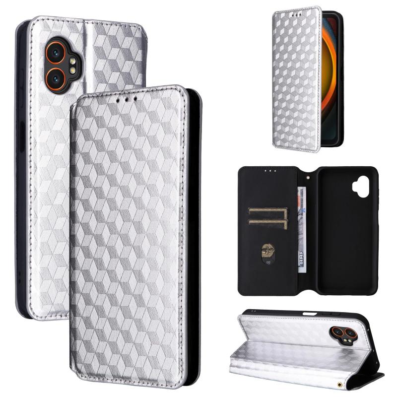 For Samsung Galaxy XCover 7 Pro Cubic Grid Texture Flip Leather Phone Case(Silver)
