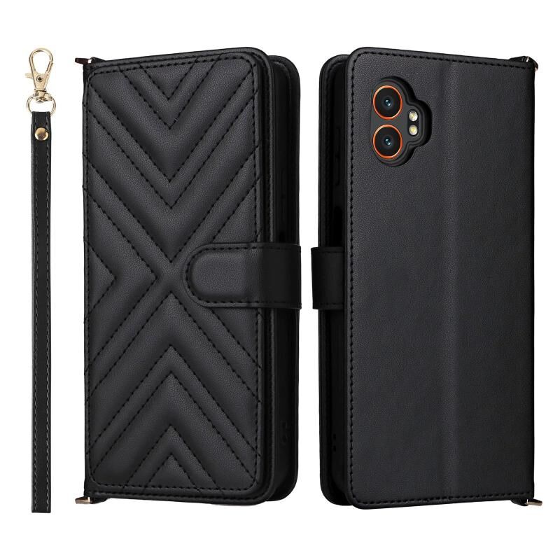 Θήκη τηλεφώνου δερμάτινη πολλαπλών λειτουργιών για Samsung Galaxy XCover 7 Pro με 6 υποδοχές καρτών και λουρί καρπού (Μαύρο)
