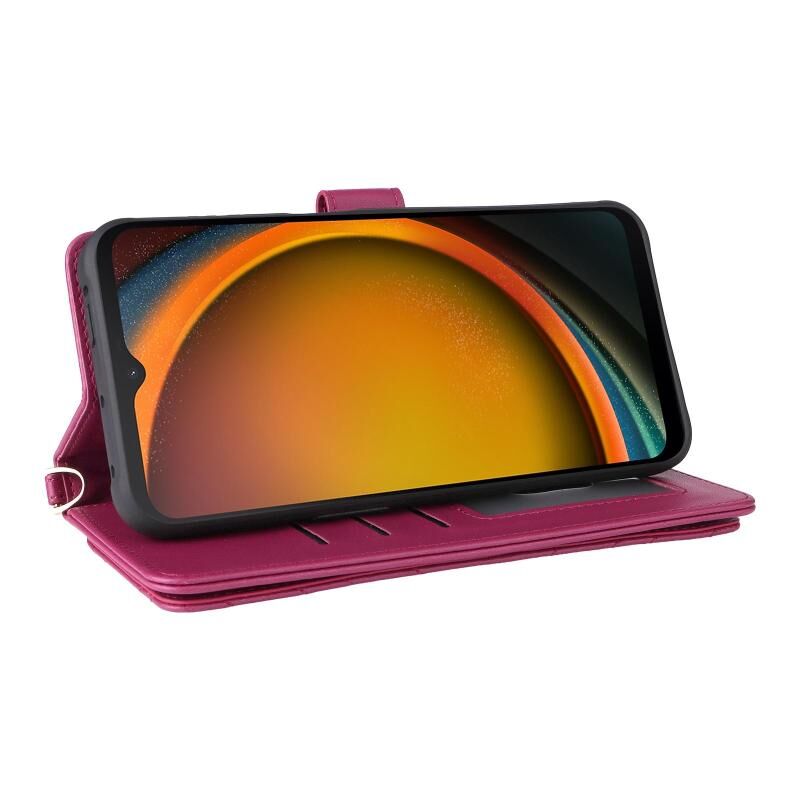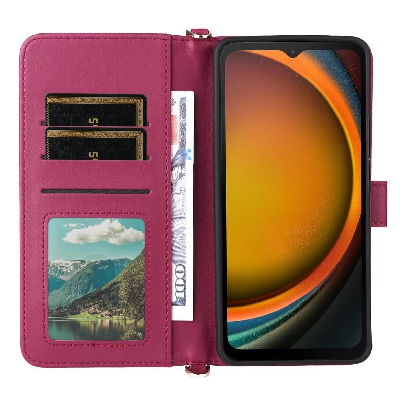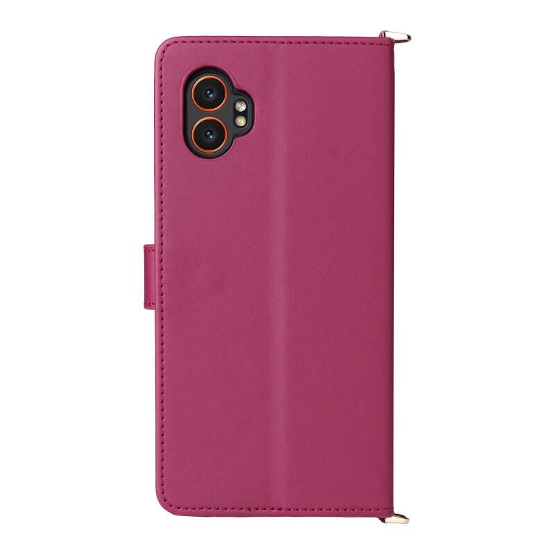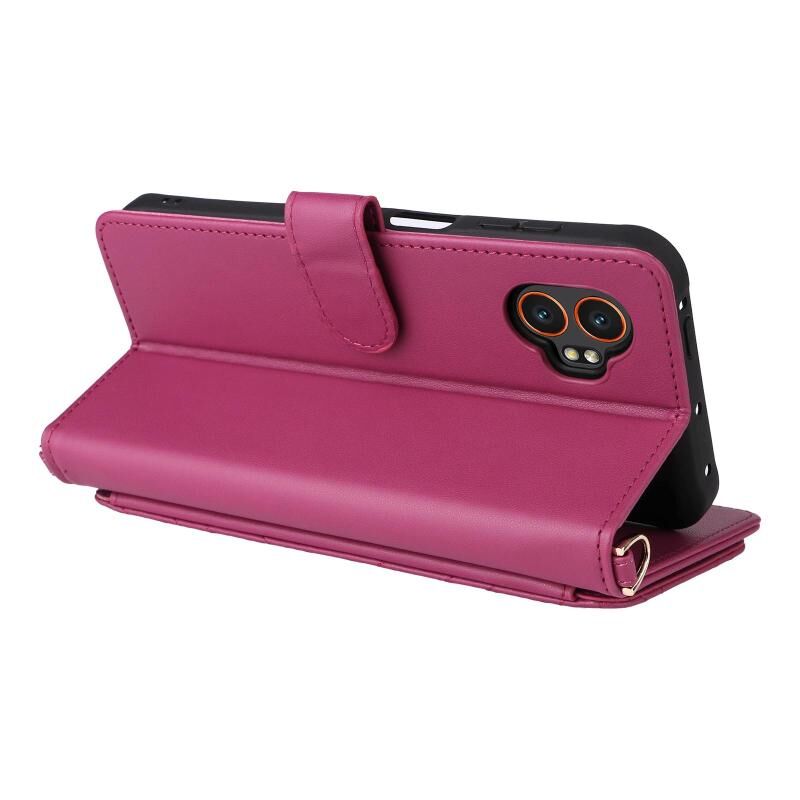 Θήκη τηλεφώνου δερμάτινη πολλαπλών λειτουργιών για Samsung Galaxy XCover 7 Pro με 6 υποδοχές καρτών και λουρί καρπού (Ροζ)