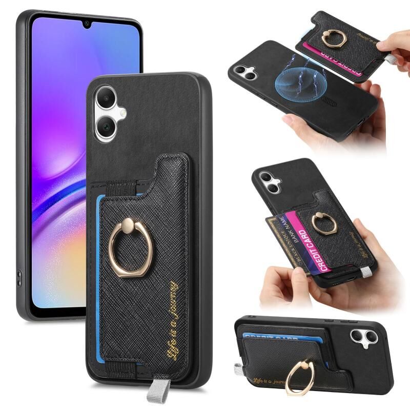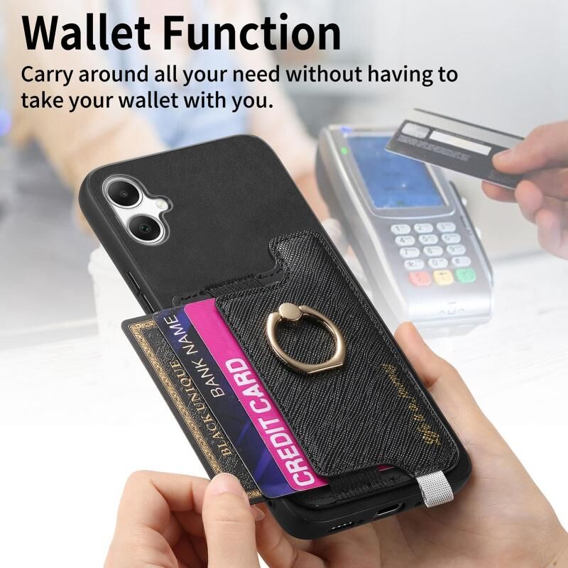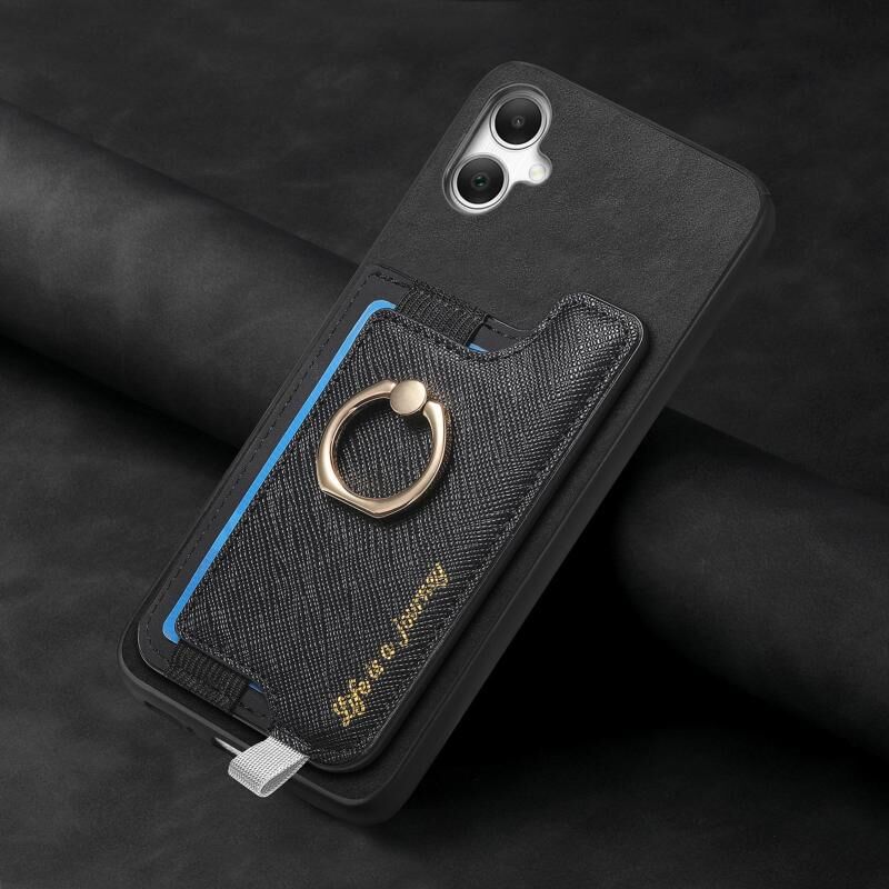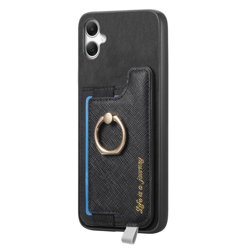 Θήκη κινητού τηλεφώνου Samsung Galaxy XCover 7 Retro Cross Leather Ring Οριζόντια Εισαγωγή Κάρτας MagSafe (Μαύρο)