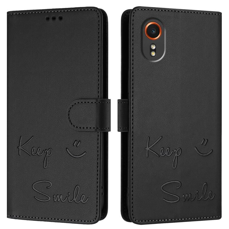 Για Samsung Galaxy XCover 7 Χαμόγελο ανάγλυφο RFID δερμάτινη θήκη τηλεφώνου (Μαύρο)
