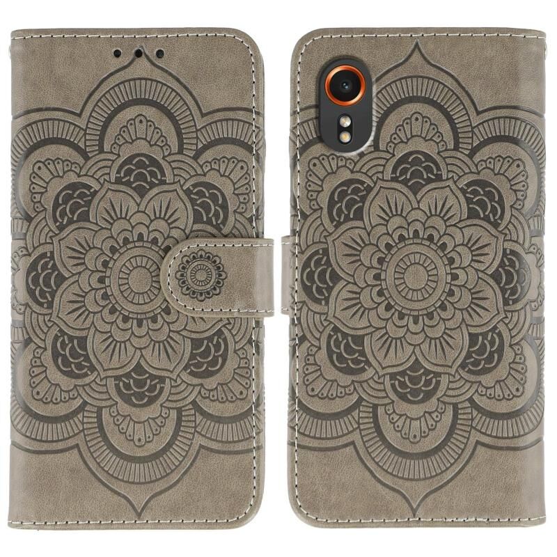 Θήκη δερμάτινη για Samsung Galaxy Xcover 7 με ανάγλυφο σχέδιο Sun Mandala (Κόκκινη)
